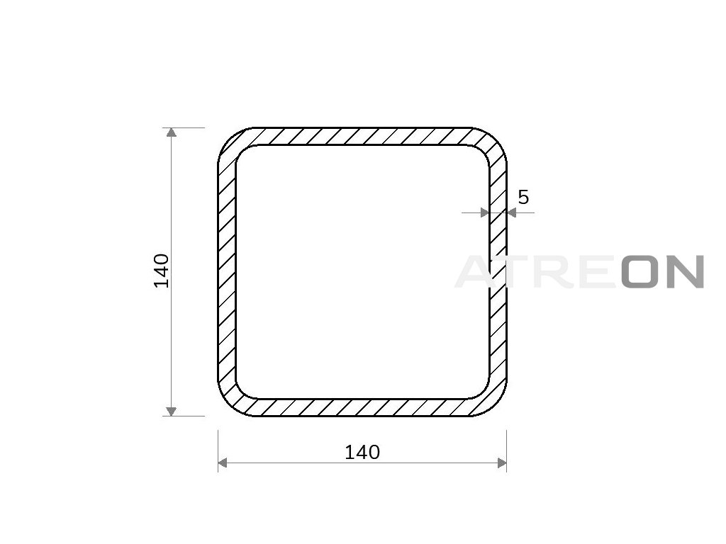 Jekl 140x140x5 (S355) je standardně svařovaný uzavřený ocelový profil čtvercového tvaru válcovaný za studena jakosti S355. Široké spektrum využití ve stavebnictví a zámečnictví, a také v technických oborech. Tento čtvercový jekl je dodáván ve výrobní délce 6 m s hmotností 121,20 kg, šířkou strany 140 mm a tloušťkou profilu 5 mm. Váha produktu na 1 m je 20,2 kg.