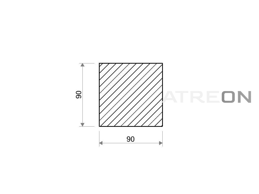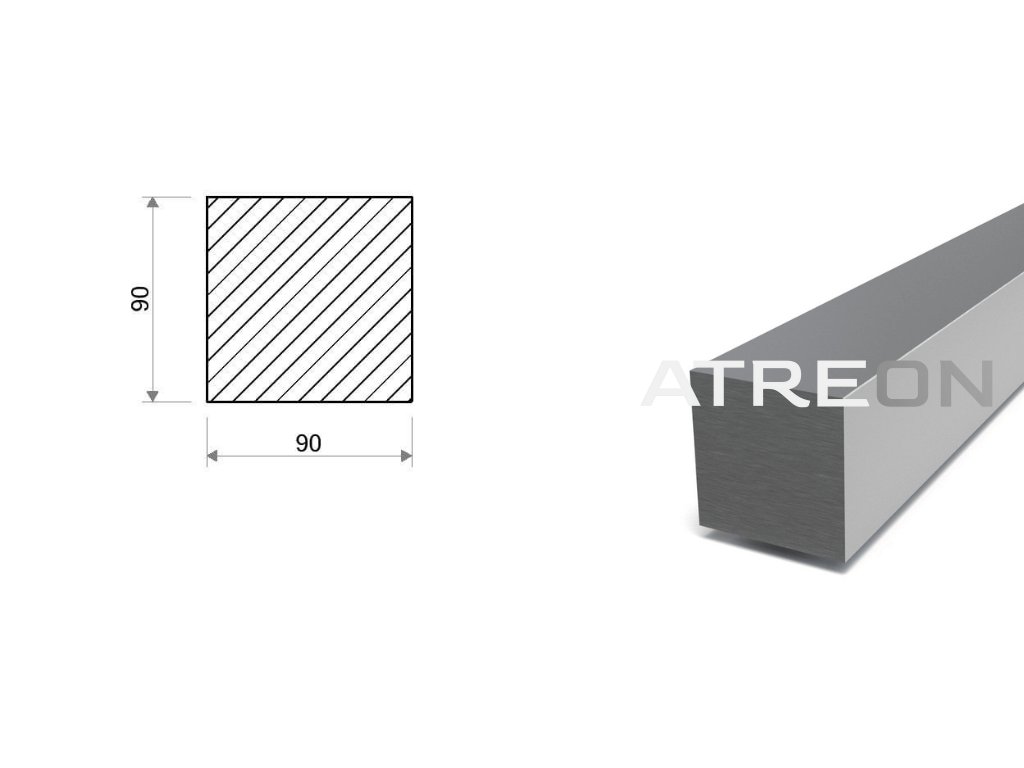 Ocel čtvercová 90x90 mm (S355) je čtvercový ocelový profil válcovaný za tepla jakosti S355. Je velmi dobře obrobitelná a vhodná pro konstrukční a nosné účely. Využití má především v zámečnických dílnách, kde je prioritně používána na výrobu ozdobných výplní plotů. Dodávána ve výrobních délkách po 6 m s hmotností 381,6 kg. Váha produktu na 1 m je 63,6 kg.