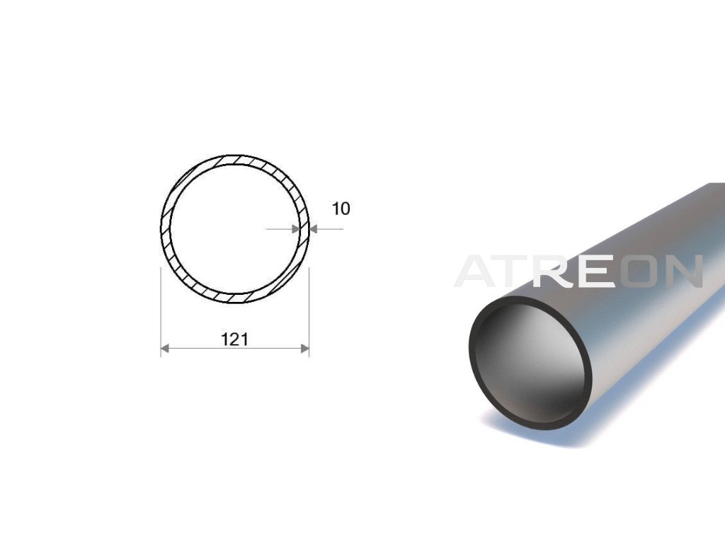 Trubka bezešvá 121x10 (S355) je ocelová trubka válcovaná za tepla jakosti S355 vyráběná z plné kulatiny protlačením přes trn. Vyráběna z jednoúčelové oceli, která se používá pouze k výrobě právě bezešvých trubek. Využití pro trubkové konstrukce, potrubí pro vedení vody, páry, plynu, vzduchu na výrobu rámů kol a automobilů. Výrobní délky se u bezešvých trubek pohybují standardně mezi 5 a 7 m. Vyhrazujeme si tedy právo na doúčtování případných rozdílů v délce materiálu.