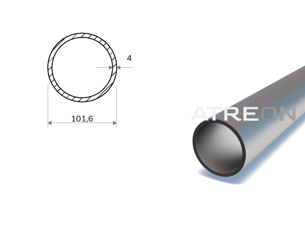 Trubka bezešvá hladká 101,6x4 (S355) je ocelová trubka válcovaná za tepla jakosti S355. Vyráběna z jednoúčelové oceli, která se používá pouze k výrobě právě bezešvých trubek. Využití pro trubkové konstrukce, potrubí pro vedení vody, páry, plynu, vzduchu na výrobu rámů kol a automobilů. Výrobní délky se u bezešvých trubek pohybují standardně mezi 5 a 7 m. Vyhrazujeme si tedy právo na doúčtování případných rozdílů v délce materiálu.