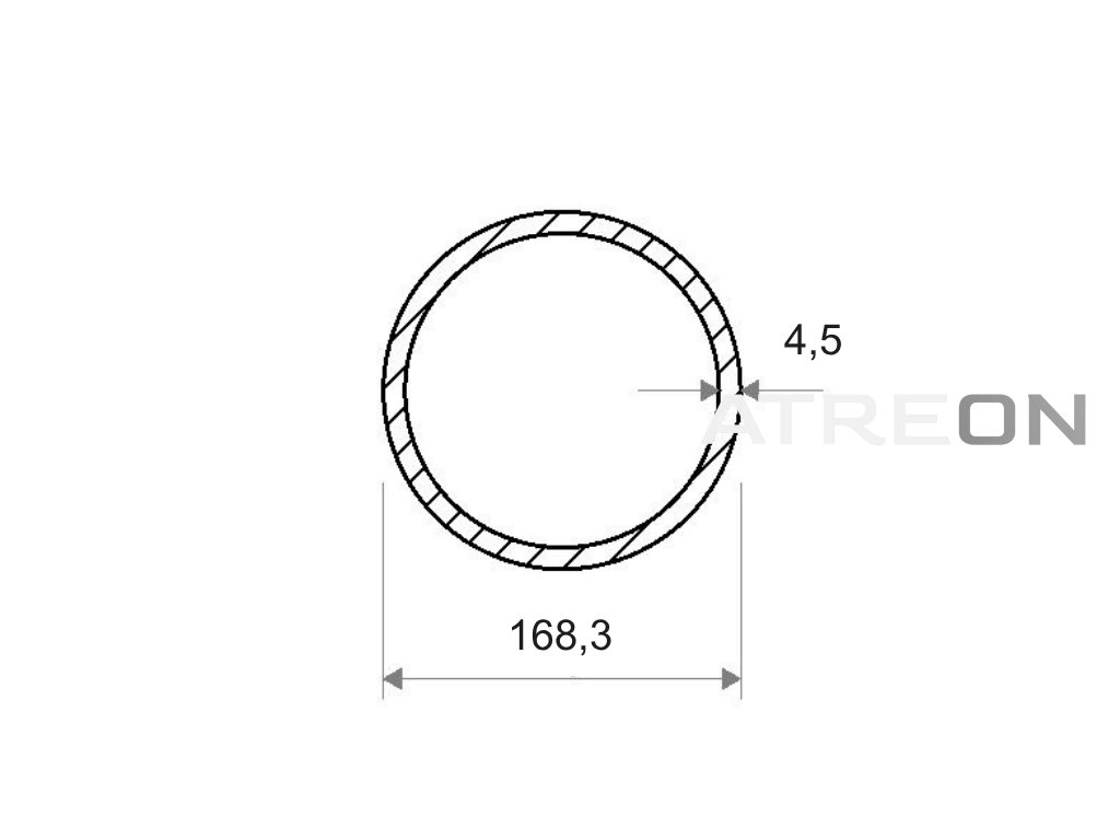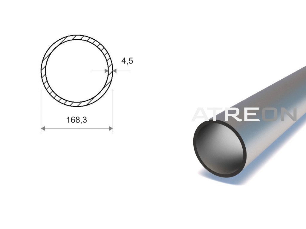 Trubka bezešvá hladká 168,3x4,5 (S355) je ocelová trubka válcovaná za tepla jakosti S355. Vyráběna z jednoúčelové oceli, která se používá pouze k výrobě právě bezešvých trubek. Využití pro trubkové konstrukce, potrubí pro vedení vody, páry, plynu, vzduchu na výrobu rámů kol a automobilů. Výrobní délky se u bezešvých trubek pohybují standardně mezi 5 a 7 m. Vyhrazujeme si tedy právo na doúčtování případných rozdílů v délce materiálu.