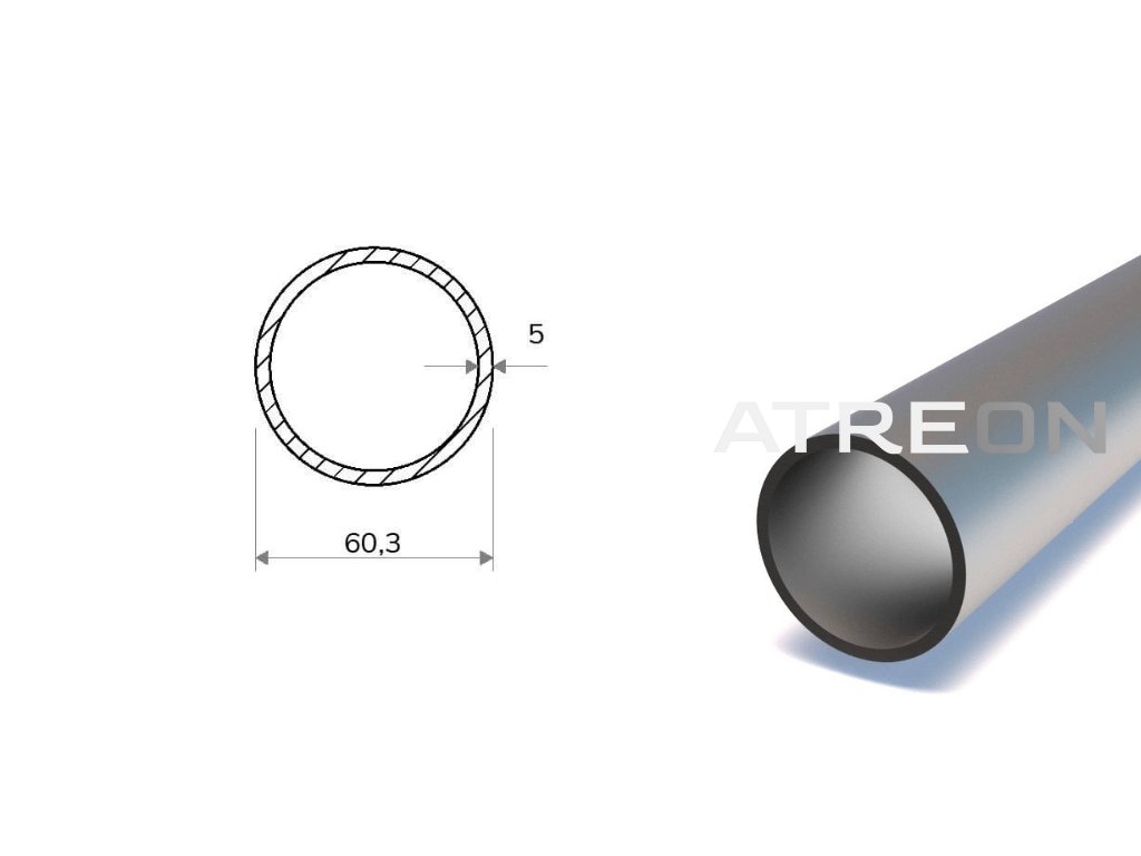 Trubka bezešvá hladká 60,3x5 (S355) je ocelová trubka válcovaná za tepla jakosti S355. Vyráběna z jednoúčelové oceli, která se používá pouze k výrobě právě bezešvých trubek. Využití pro trubkové konstrukce, potrubí pro vedení vody, páry, plynu, vzduchu na výrobu rámů kol a automobilů. Výrobní délky se u bezešvých trubek pohybují standardně mezi 5 a 7 m. Vyhrazujeme si tedy právo na doúčtování případných rozdílů v délce materiálu.