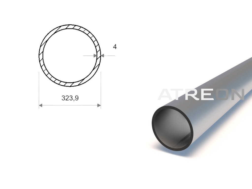 Trubka svařovaná konstrukční 323,9x4 je trubka válcovaná za tepla vyrobená z neušlechtilé konstrukční oceli jakosti S235, která je standardně svařovaná. Trubky nabízíme v různých průměrech s různou tloušťkou stěny. Široké spektrum využití především v zámečnické činnosti. Nejsou vhodné pro vedení různých rozpínavých látek nebo plynu. Dodávána ve výrobní délce 6 m s hmotností 189,34 kg a tloušťkou stěny 4 mm. Váha produktu na 1 m je 31,55 kg.